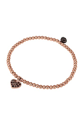Elli Bracciale da Donna in Argento 925, Placcato Oro Rosa con Ciondolo a Forma di Cuore con Cristalli Swarovski, 18 cm