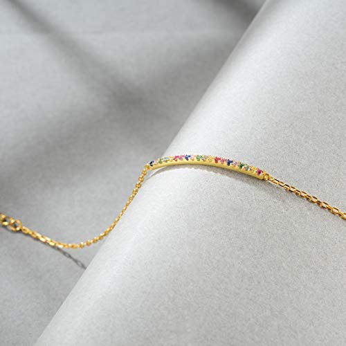 Bracciale da donna in argento Sterling 925 con chian arcobaleno, placcato oro 18 carati con zirconi cubici, semplice catena regolabile