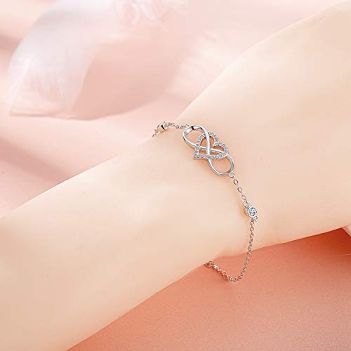 Bracciale da donna in argento Sterling 925 con zirconi, braccialetto da donna a forma di cuore, per donne e ragazze, simbolo dell'infinito, regalo per Natale, compleanno