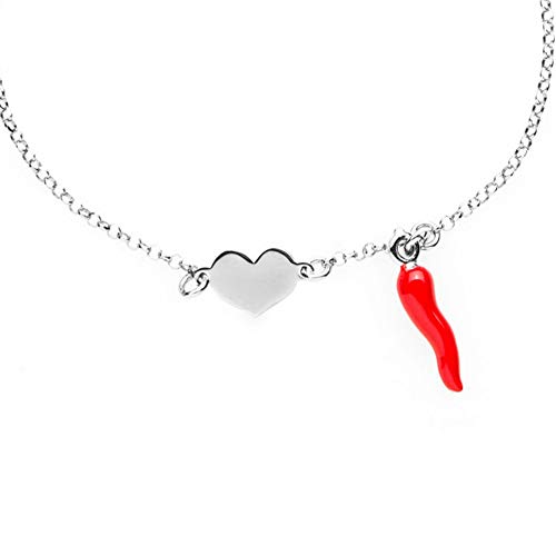 Bracciale donna, bracciale bambina, Bracciale Cornetto Rosso Nero Bianco charms Pendente Argento 925 bracciale cuore stellina. bracciale portafortuna lunghezza 17.5-21 cm (Argento/rosso/Cuore)