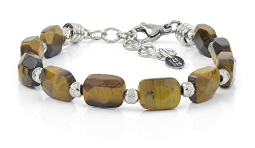 10:10 Bracciale Uomo Donna Braccialetto pietre naturali nuggets rettangolari 11 x 8 x 5 mm e perle diamantate in acciaio inox diametro di 4 mm, realizzato in Italia