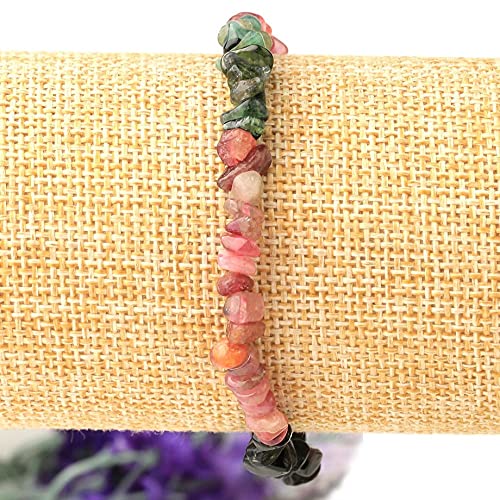 BYUK Bracciale Donna,7 Chakra Naturali Irregolari Chip Multicolor Tormalina Gemma Perline Braccialetto Elastico Elegante Braccialetto Delicato Regalo di Compleanno per Uomo Donna
