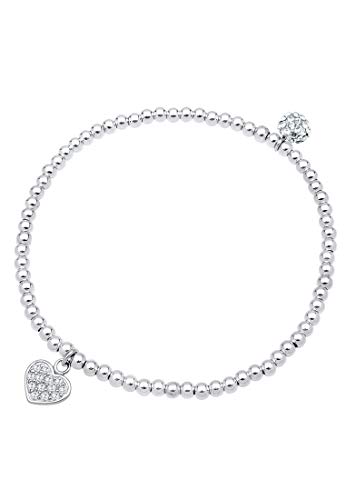Elli Bracciale Donna Ciondolo a Forma di Cuore con Cristalli in Argento Sterling 925