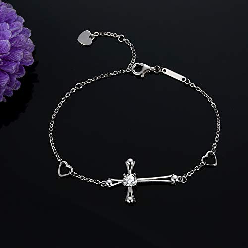 ❤ ALTA-QUALITÀ ❤ - Bracciale religioso da donna realizzato in Argento Sterling 925.Questo bracciale in argento sterling è composto da un bellissimo simbolo della croce in cubic zirconia e due simboli di cuore nella catenina. Il simbolo della croce è impreziosito da scintillanti cubic zirconia bianchi che lo rendono davvero accattivante. Qui è stata utilizzata la squisita tecnica di lucidatura.