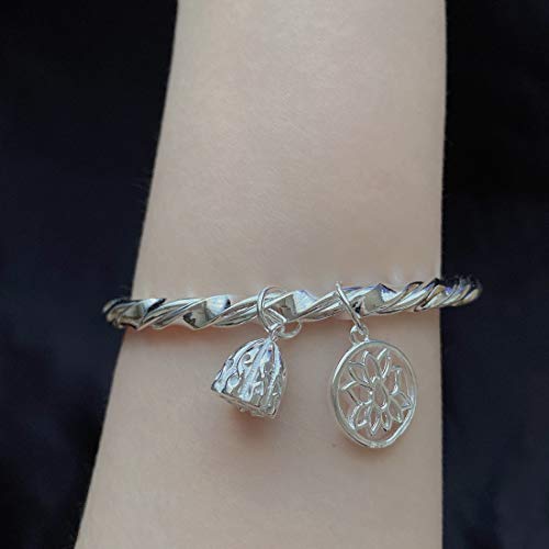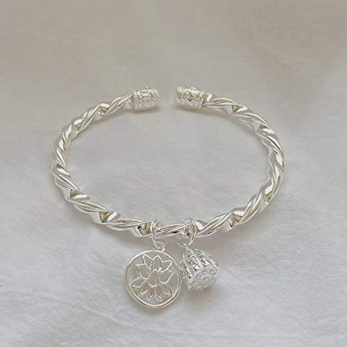 Bracciale donna fiore di loto Argento sterling 999, regali di San Valentino Bracciale donna, braccialetto per mamma amante fidanzata size Misura regolabile (White)