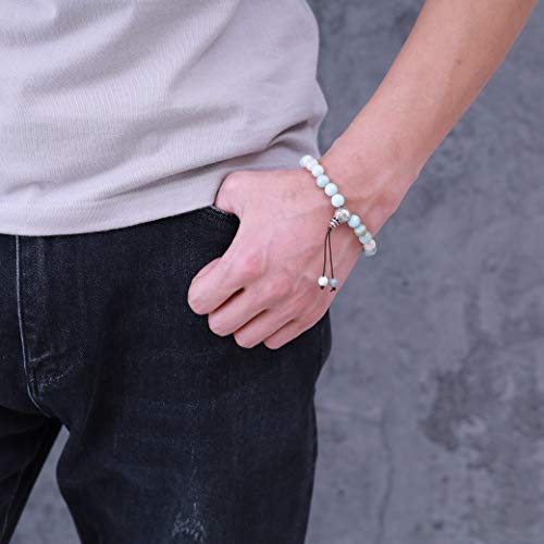 COAI Bracciale da Donna e da Uomo con Perle in Amazzonite e Amuleto della Longevita' in Argento Sterling 925, Bracciale Elastico in Pietre Naturali