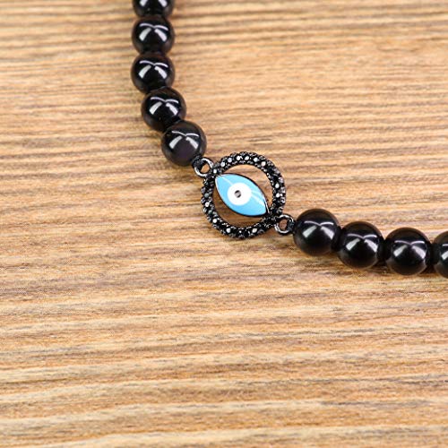 Materiale: perle in ossidiana 6mm, amuleto occhio di Allah 11*3mm