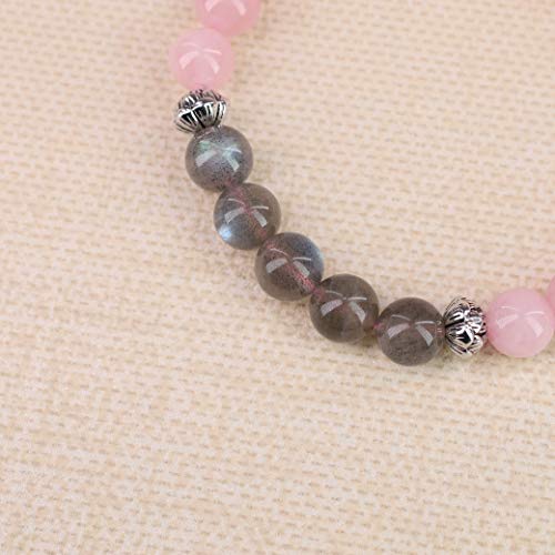 Materiale e Taglia: Quarzo rosa e labradorite 8mm, adatto a polsi di 16-18cm
