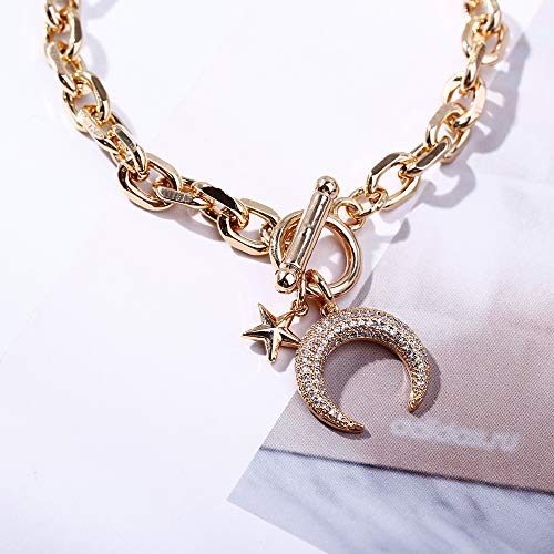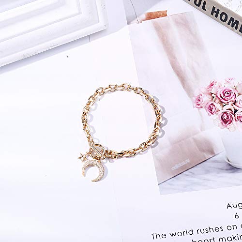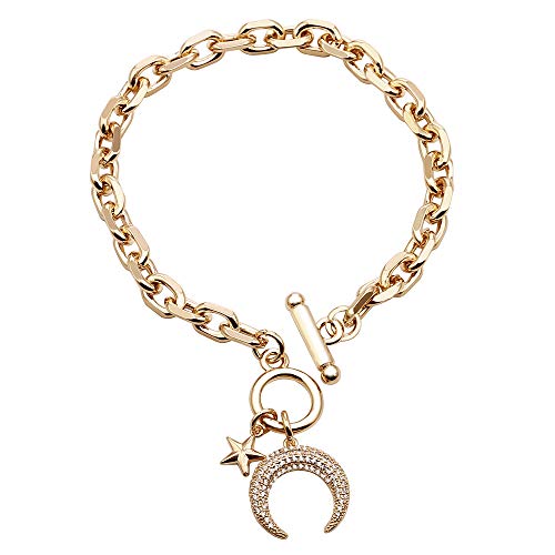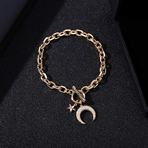 Bracciale da donna con luna / stella, ciondolo in oro rosa placcato argento con chiusura a moschettone a catena, braccialetto da polso con zirconi (Placcato oro)