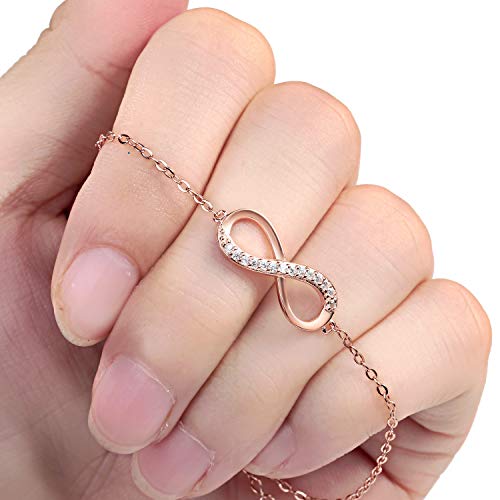 Bracciale da donna in oro rosa con zirconi cubici 925 gioielli in argento sterling per donna ragazza, simbolo di infinito bracciali amore infinito regalo per natale compleanno di san valentino