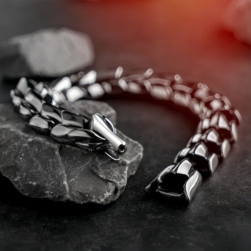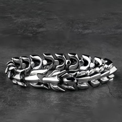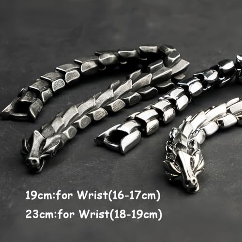 Bracciale drago cinese in acciaio al titanio per uomo gioielli in acciaio inossidabile 15mm 19cm,argento