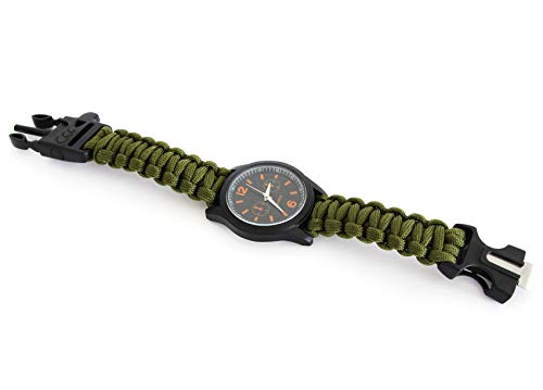 Bracciale ecumenico PARACORD con orologio Marchio PRECORN Corda intrecciata e utilizzata per braccialetto Corda "Parachute Cord" Corda Paracord 350 di colore verde-oliva (ATTENZIONE: QUESTA CORDA NON É UTILIZZABILE PER ARRAMPICAMENTI)