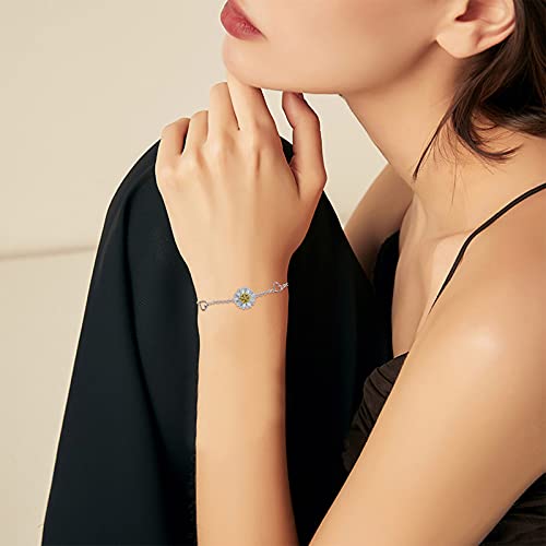 Bracciale a forma di margherita, in argento Sterling 925, con cuore, regolabile, per donne e ragazze e adolescenti, 9 inches, Argento sterling