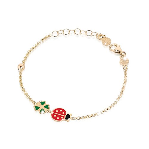 Bracciale Oro Giallo Quadrifoglio e Coccinella l. 12 - 14 cm