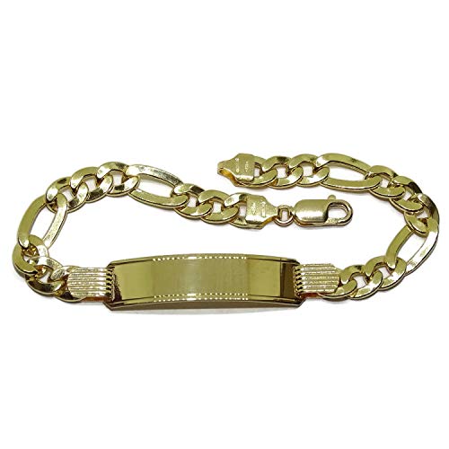 Bracciale da Uomo Grande in Oro Giallo 18 kt con Piastra e Catena 3 x 1 da 8 mm di Larghezza, Lunghezza 21,50 cm. Personalizzabile al 100%