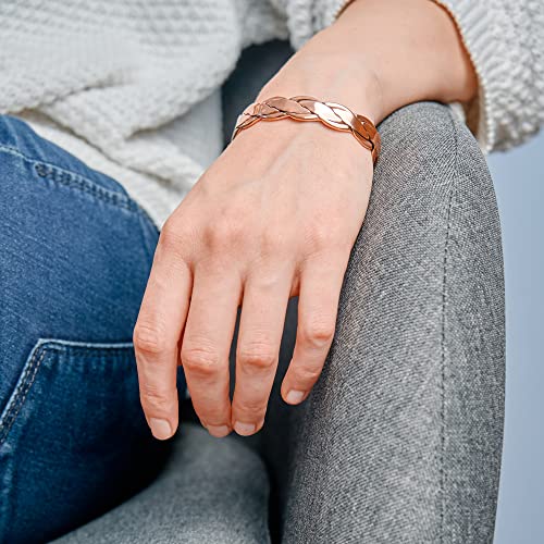 Bracciale in rame intrecciato, naturale, senza magneti, per uomo e donna, elegante