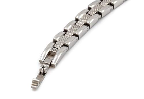 Qualità:L'elaborato acciaio inossidabile (316L) è anallergico e resistente all'usura, consentendo di utilizzare a lungo questo braccialetto.La chiusura di sicurezza protegge dalla perdita involontaria del bracciale.