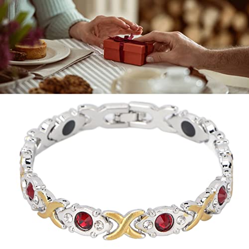 Bel design - I braccialetti per magnetoterapia hanno 8 magneti incorporati nel braccialetto, finta pietra rossa in argento e oro, belli e possono mostrare il tuo temperamento. Non esitare!
