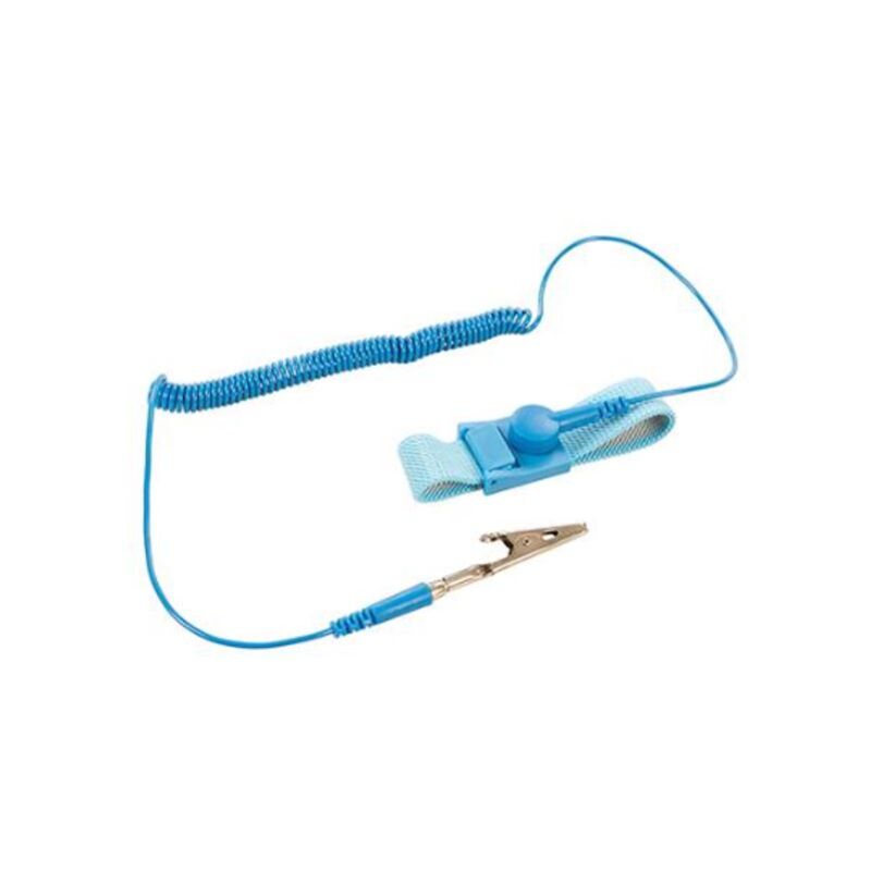 Bracciale di messa a terra antistatico 800 mm. Con cinturino regolabile, spina a banana e clip a coccodrillo. Previene l'accumularsi di carica elettrostatica in ambienti secchi. Protegge i computer e gli apparecchi elettronici dai danni da elettricità statica. Contatto conduttivo a 360°. Si adatta a tutte le taglie.
