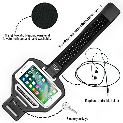 Bracciale nero NEVEQ compatibile con tutti i telefoni 5-6 pollici. Custodia Premium Sport Armband, resistente all'acqua e al sudore. Con supporto per chiave extra, porta carte o porta monete e cuffie.