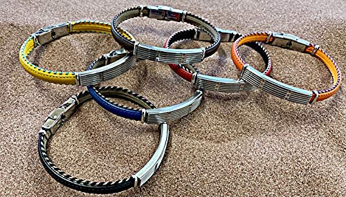 MISURA: Lunghezza 22 cm, grazie alla pratica chiusura è adattabile a tutti i tipi di polso. La piastra centrale è lunga 4 cm x 0,8 circa. La pelle del bracciale è larga circa 0,8 cm.