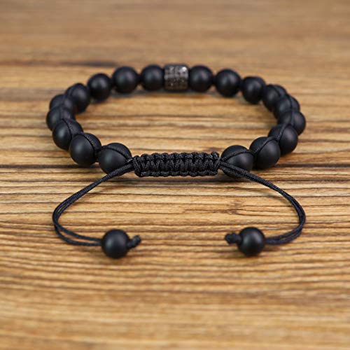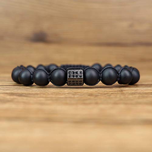 COAI Bracciale per Lui con Perle in Onice Opaco con Inserto Amuleto con Zirconi
