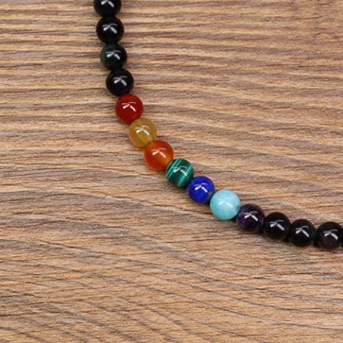 COAI Bracciale con Perle in Ossidiana, Malachite, Agata Grigia e Pietre 7 Chakra con Mano di Fatima