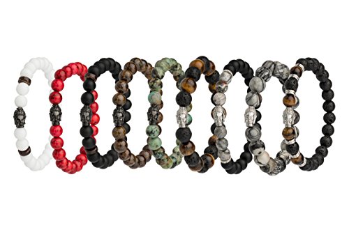 Luna Jule, bracciale di perle con pendente con testa di Buddha in diverse lunghezze (18-20 cm) e modelli per uomo e donna, colore: matt schwarzen Onyx Perlen, cod. 672023-19-s