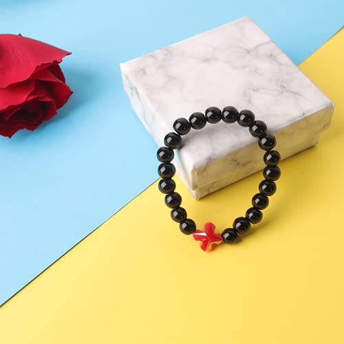 Bracciale con perle di pietra e croce, bracciale Christian BangleRosary per uomini e donne, SL-4-ST-8MM-5, Vetro,