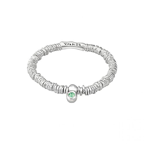 Braccialetto Unode50 Greenstone metallo elastico argento placcati verdi Swarovski anelli irregolari. Donna. Peso (gr): 19. Lunghezza (cm): 20 Larghezza (mm): 5.
