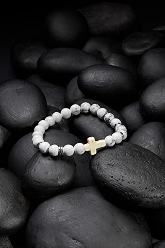 Bracciale da uomo in pietra e perle bianche con pietra artificiale Agata croce