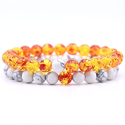 Bracciale Pietre Naturale Donna,Braccialetto In Pietra Naturale 7 Chakra Per Donna Bianco Howlite Ambra Pietra Naturale Perline Pietra Preziosa Braccialetto Yoga Perline Bracciali Per Uomo (Un Set)