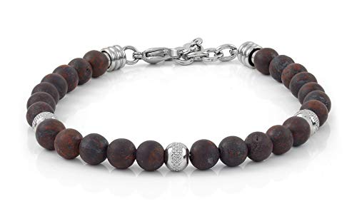 10:10 Bracciale con Pietre Naturali Diaspro Rosso Frost da 6 mm, Beads in Acciaio Inox, Bracciale Molto Resistente Prodotto in Italia...