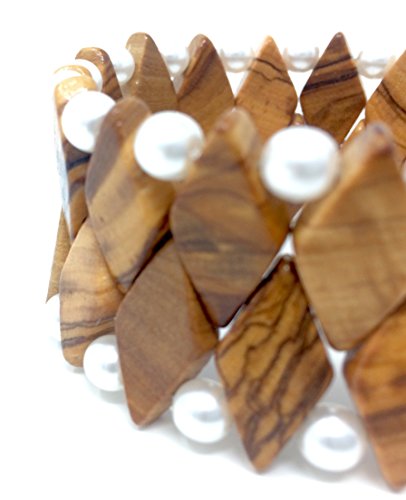 Bracciale realizzato con perline in vero legno d'ulivo, arti e perle bianche - fatto a mano a Maiorca - gioielli in legno d'ulivo