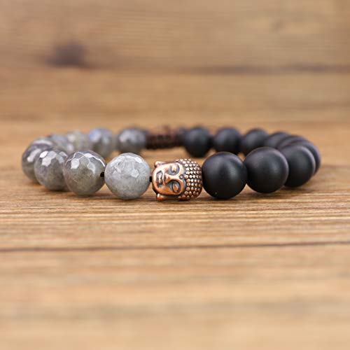 Materiale: perle in onice, occhio di tigre marrone occhio di tigre rosso o labradorite 10mm, inserto testa del buddha in lega