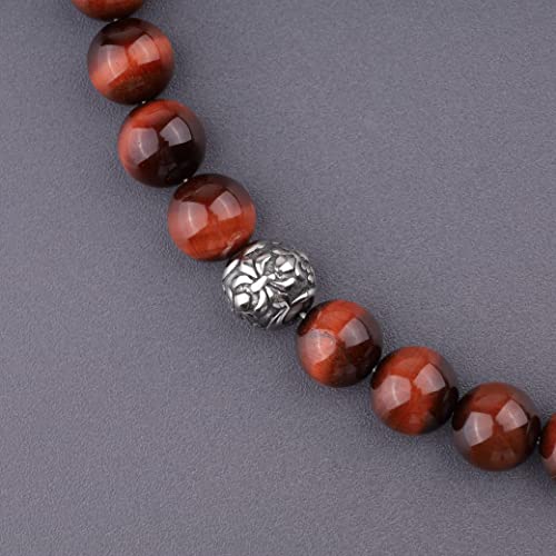 Materiale: bracciale con perle in occhio di tigre rosso 8mm, perla Fleur de Lis in acciaio inox 8.5mm