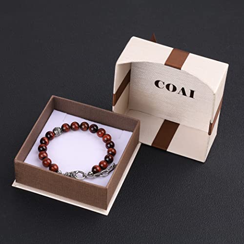 COAI Bracciale da Uomo Regolabile in Occhio di Tigre Rosso con Perla Fleur de Lis in Acciaio Inox