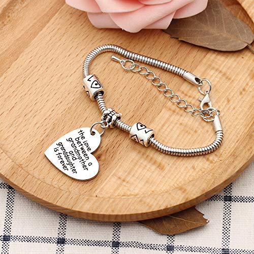 Bracciale rigido con ciondolo a forma di cuore con scritta in inglese “The love between a grandmother and granddaughter is forever”, idea regalo per la famiglia