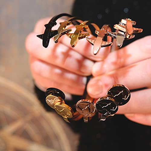 Bracciale Rigido da Donna con Aereo e Mappamondo in Acciaio Inox - Bracciale con Mondo ideale come idea regalo per chi ama viaggiare - Modello Hanoi (Oro - Lucido)