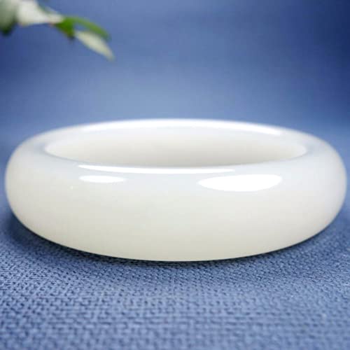 Bracciale rigido in giada bianca per donna Gioielli in pietra preziosa di giada naturale retrò in stile cinese Regalo per la festa della mamma per la mamma (58 mm)