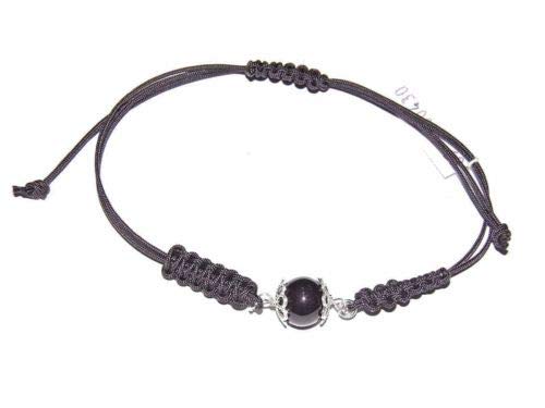 Bracciale Sardo su coccu con Sfera Nera Portafortuna Unisex Argento Regolabile