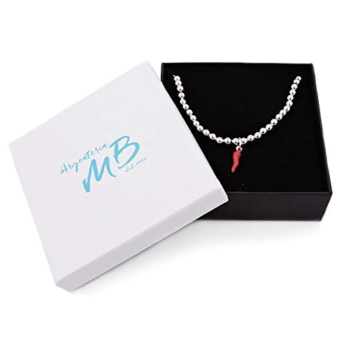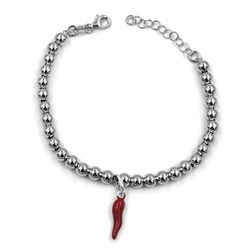 Bracciale Sfere in Argento 925 con Corno Rosso Smaltato a Mano Argento
