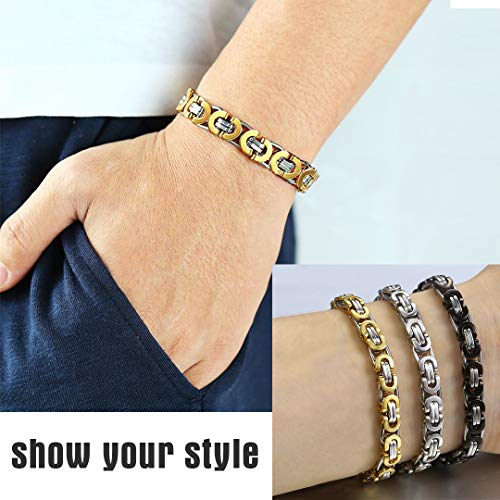 Bracciale da uomo Steampunk bicolore con catena bizantina in acciaio inossidabile 8 mm di larghezza 21 cm Bracciale a maglie lunghe con confezione regalo per ragazzi motociclisti