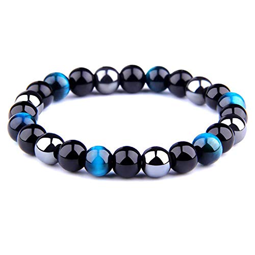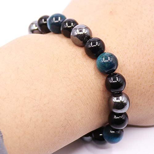 Bracciale a tripla protezione con occhio di tigre, perline di ematite e ossidiana nera di UEUC