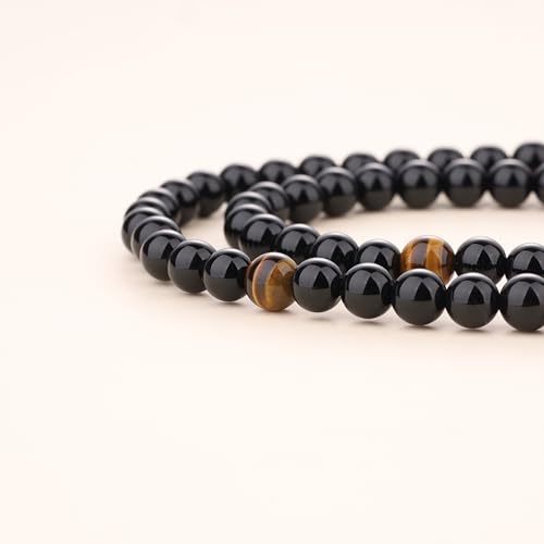 COAI Bracciale Mala Unisex, Bracciale Tibetano da Preghiera in Onice e Occhio di Tigre