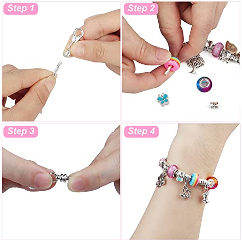 Kit di braccialetti con ciondoli di grande valore: questo kit di braccialetti con ciondoli fai-da-te viene fornito con 3 catene placcate in argento, 20 ciondoli, 20 perline di metallo, 12 perline di cristallo e una confezione regalo. Consenti ai tuoi bambini di mostrare appieno la loro creatività e realizzare i loro braccialetti preferiti