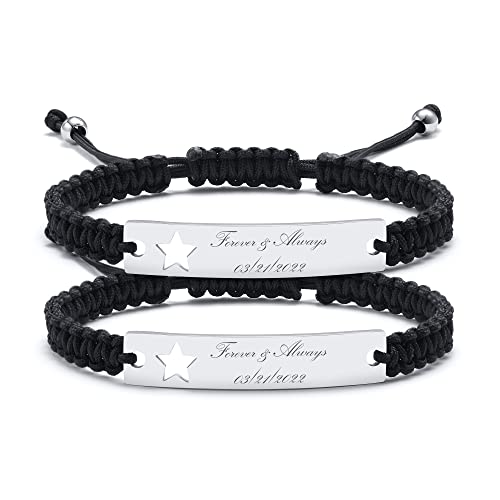 Vnox Braccialetti per Coppie con Corda Intrecciata Personalizzati:Personalizza la Distanza della Relazione Bracciale Stella Braccialetti Sorella Incisione per Amico di Coppia,2 Pezzi