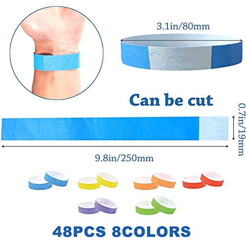 Braccialetti Identificativi, Braccialetti d'ingresso Impermeabili, Braccialetti Carta Eventi, per Controllo e Sicurezza Durante gli Eventi 48 Pezzi,6 colori