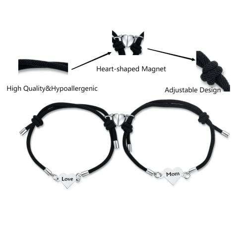 Braccialetti magnetici per madre e figlia, braccialetti a forma di cuore coordinati, neri regolabili con piccoli ciondoli in acciaio inossidabile, regalo per la festa della mamma