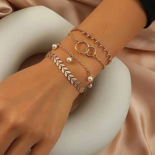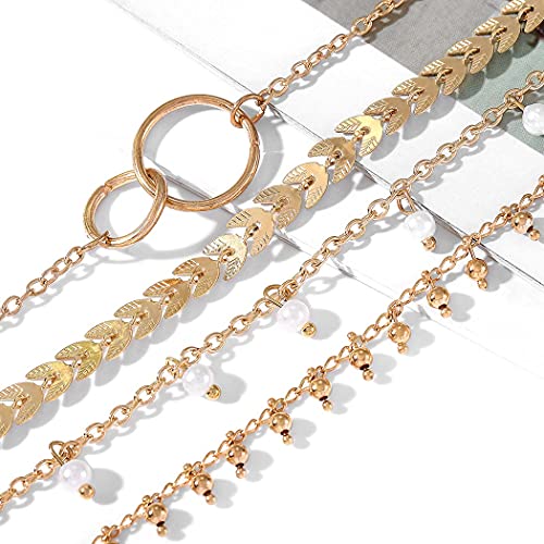 Yean Boho - Set di braccialetti a strati con perline e catena a mano in oro, per donne e ragazze (4 pezzi)